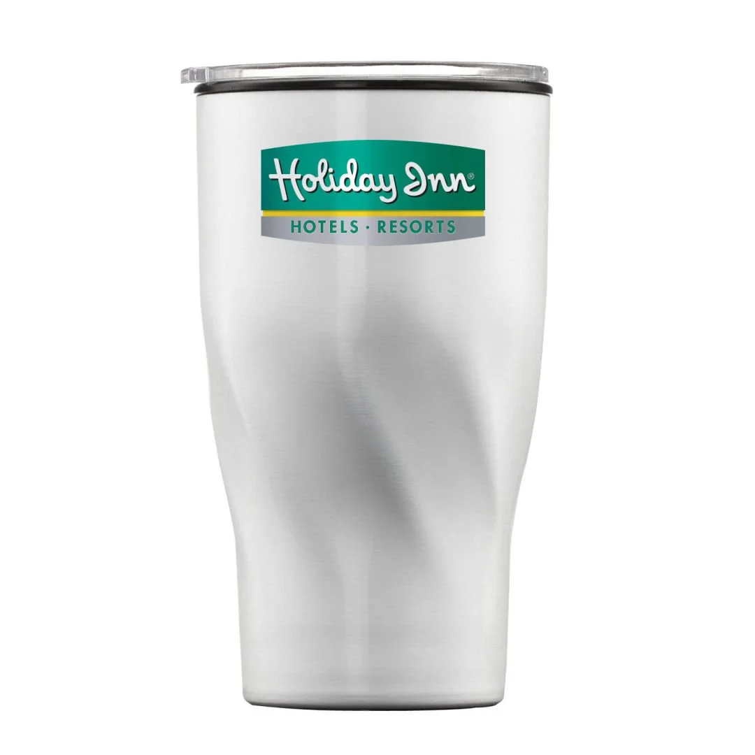 This sleek stainless steel travel tumbler features a thermoplastic liner, double-wall body, and a clear push-on lid with a secure thumb-slide sip opening. Ideal for corporate gifting, hospitality amenities, or client appreciation, it keeps drinks at the perfect temperature.