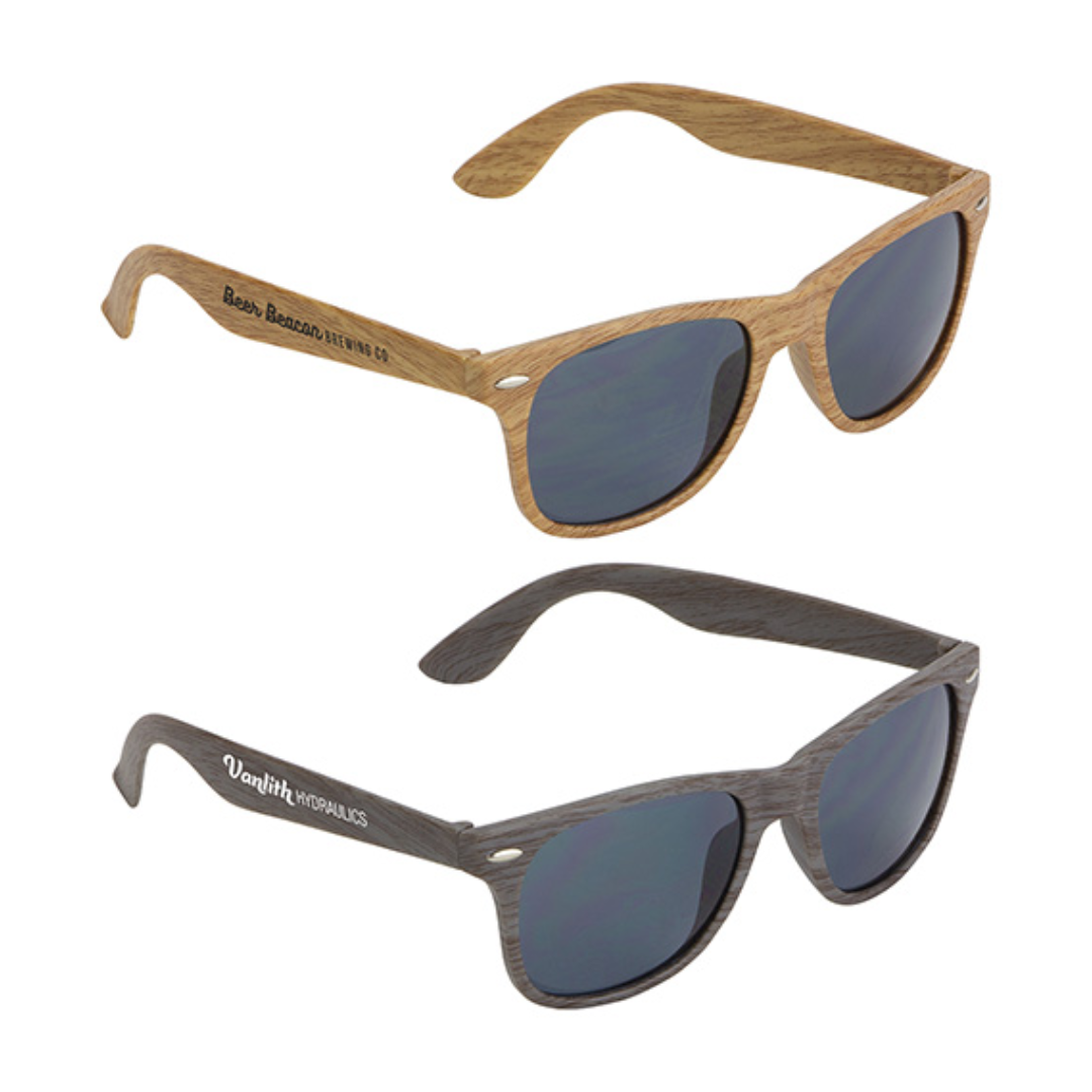 Stylish and lightweight, these UV400 sunglasses feature wood-grain frames and protective lenses. Perfect for beach days, travel, resort amenities, or seasonal corporate gifting and picnics.