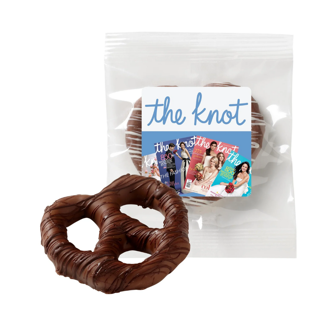This chocolate‑covered pretzel knot combines salty crunch with rich chocolate for a satisfying treat. Ideal for cafés, boutique hotels, event giveaways, venue snack offerings, or branded corporate gifting that adds a tasty touch to your hospitality experience.