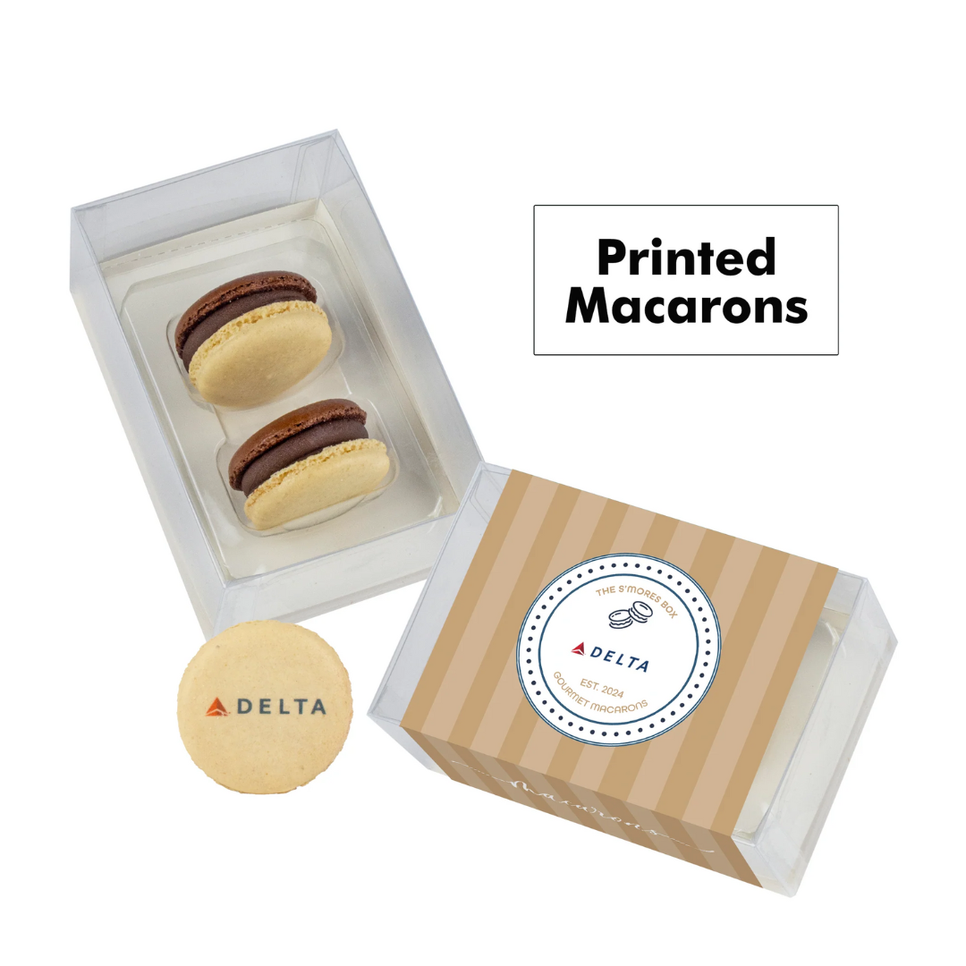 This set of two French macarons combines delicate texture and rich flavor in a gold-trimmed box with a custom sleeve. Perfect for cafés, boutique hotels, or branded client gifting. A variety of flavors are available to fit your theme and brand. Shipping to US only.