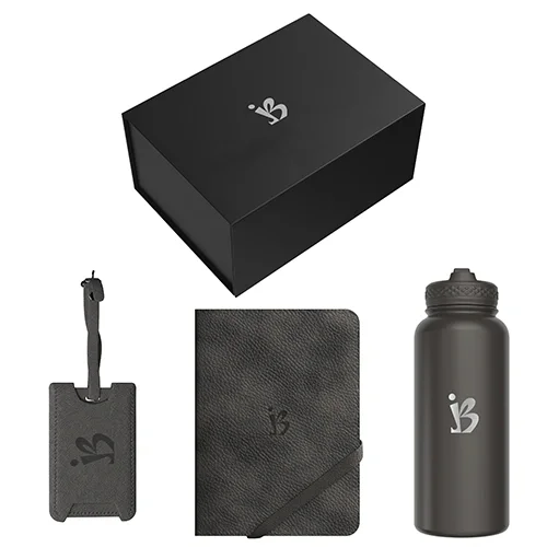 This executive gift set includes a spiral journal, ballpoint pen and stainless steel bottle, making it well suited for employee onboarding, conference gifting and branded workplace programs. Presented in a magnetic gift box for a refined professional presentation.